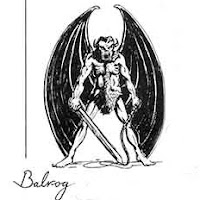 By way of comparison, here's another Balrog-inspired monster... The C-29 Winged Fire Demon sculpted by Nick Bibby (1985).
